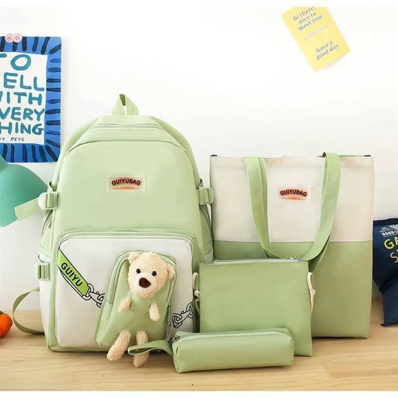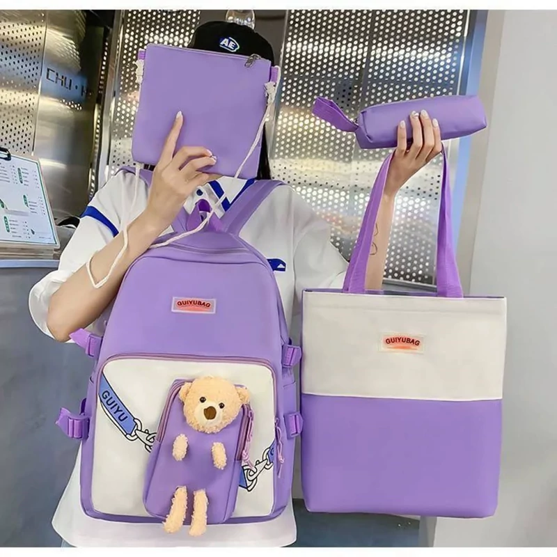 کولهپشتی چهارتکه عروسکی «TeddyBag ستارهای» استایلی خاص، کاربردی و بانمک برای همه سلیقه ها اگر دنبال یه کولهپشتی با امکانات کامل، استایل شیک و یه همراه بامزه برای روزای مدرسه، دانشگاه یا حتی سفرهای کوتاه هستی، این ست چهارتکه همه چیزو یهجا برات داره! چهارتکهی کاربردی شامل: • کولهپشتی بزرگ جادار 45*35 • کیف دستی همراه • کیف دوشی یا کراسبادی خوشفرم • جامدادی / کیف لوازم کوچک • عروسک تدی بامزه آویز دار که دلبری رو کامل میکنه! ویژگیها: • جنس برزنتی با کیفیت و سبک • طراحی یونیک با جیبهای کارآمد جلو و کناری • فضای داخلی مناسب برای لپتاپ، کتاب، دفتر، بطری و … • بندهای قابل تنظیم و بسیار راحت برای استفاده روزمره • زیپهای روان و بادوام رنگبندی جذاب و متنوع: • مشکی کلاسیک • بنفش فانتزی • صورتی دلبرانه • آبی آرام • سبز پاستلی ملایم مناسب برای: دانشآموزان، دانشجویان، هدیه تولد، کادو برای دوستداشتنیترین آدمای زندگیت