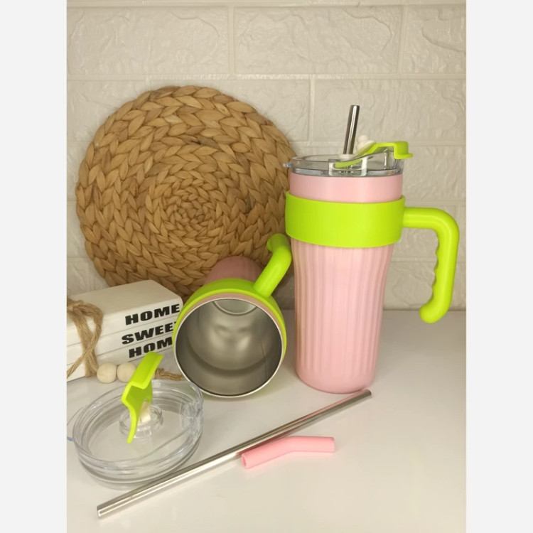 تراول ماگ دسته دار طرح تامبلر استنلی استیل دوجداره 304 حجم 860 میل،دسته دار برای حمل راحت درب اکریلیک درجه یک واشر دار ضد نشتی نی استیل،محافظ درپوش نی سیلیکونی هم نی دار، هم لبی آسان نوش تک رنگ کیفیت درجه محصول وارداتی