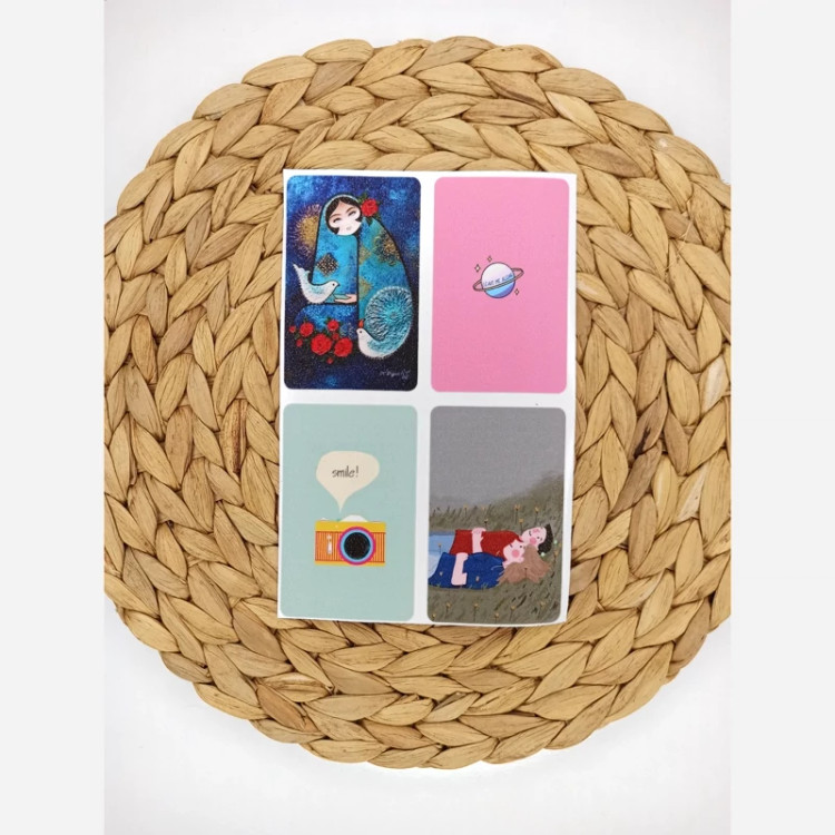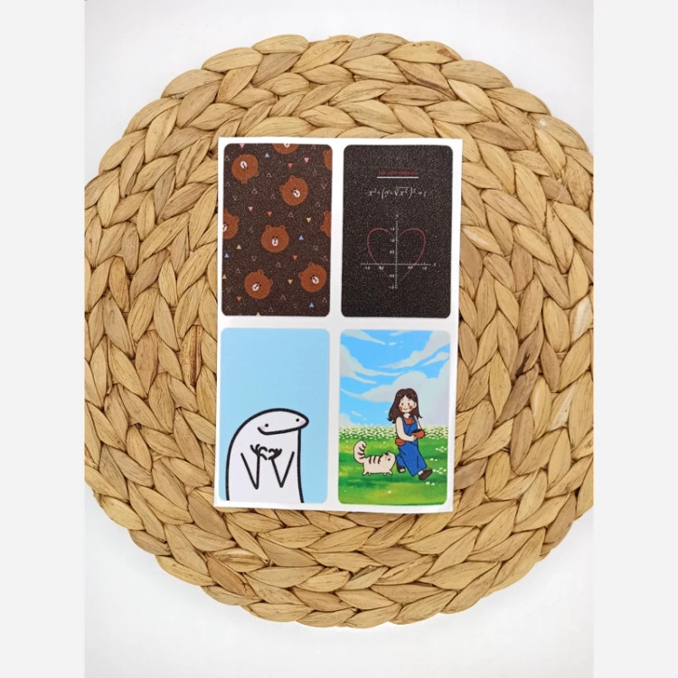 برچسب های فانتزی سایز کارتی دارای محافظ پوشاننده مات 100% ضد آب ضد خش های سطحی دارای قابلیت removable (بدون جا گذاری رد چسب بر بروی سطوح) مقاوم در برابر کشش مناسب برای کارت های عابر بانک، لپ تاپ، موبایل، کنسول های بازی، بدنه وشیشه خودرو و... قبل از چسباندن حتما سطح مورد نظر را کاملا تمیز و خشک نمایید. توجه داشته باشید که برای چسبیدن بهتر، سطوح صاف و صیقلی را انتخاب کنید. امکان دیده شدن اطلاعات کارت بانکی وجود ندارد⚠️ هر صفحه شامل 4 تصویر است قیمت لحاظ شده برای 1 برچسب میباشد.تصویر را انتخاب و عکس مورد نظر را اسکرین گرفته برش بزنید و داخل پیوی ارسال کنید.