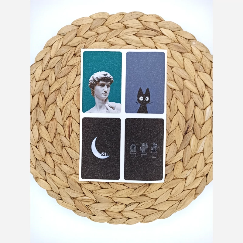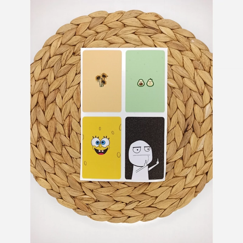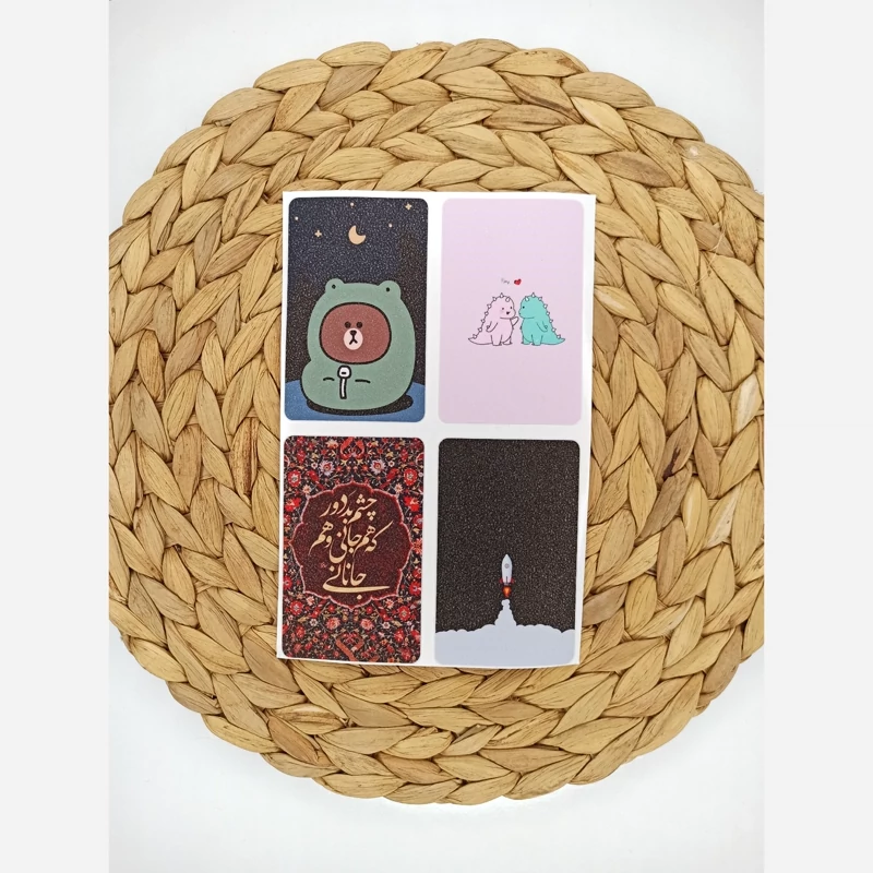برچسب های فانتزی سایز کارتی دارای محافظ پوشاننده مات 100% ضد آب ضد خش های سطحی دارای قابلیت removable (بدون جا گذاری رد چسب بر بروی سطوح) مقاوم در برابر کشش مناسب برای کارت های عابر بانک، لپ تاپ، موبایل، کنسول های بازی، بدنه وشیشه خودرو و... قبل از چسباندن حتما سطح مورد نظر را کاملا تمیز و خشک نمایید. توجه داشته باشید که برای چسبیدن بهتر، سطوح صاف و صیقلی را انتخاب کنید. امکان دیده شدن اطلاعات کارت بانکی وجود ندارد⚠️ هر صفحه شامل 4 تصویر است قیمت لحاظ شده برای 1 برچسب میباشد.تصویر را انتخاب و عکس مورد نظر را اسکرین گرفته برش بزنید و داخل پیوی ارسال کنید.