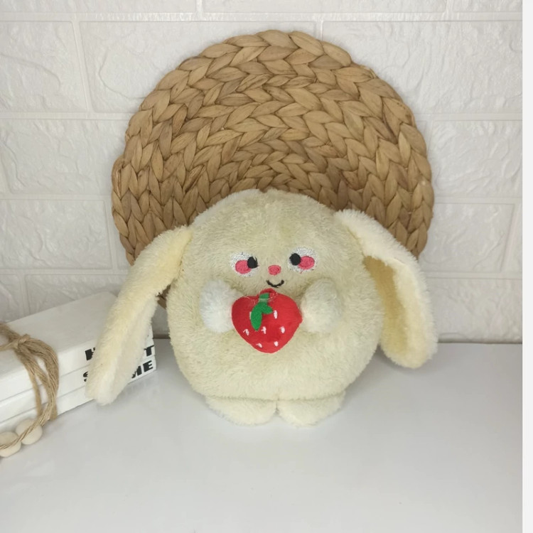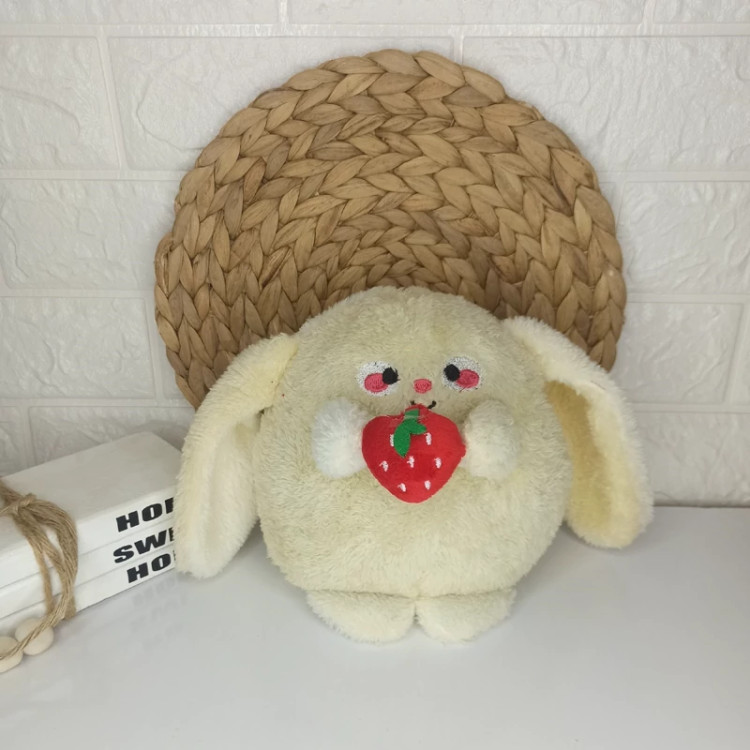 عروسک خرگوش توت فرنگی به دست پولیشی کپلو مناسب بازی کودکان بالای 2 سال به دلیل پرزدار بودن پارچه تمامی اجزا دوخت و گلدوزی میباشد