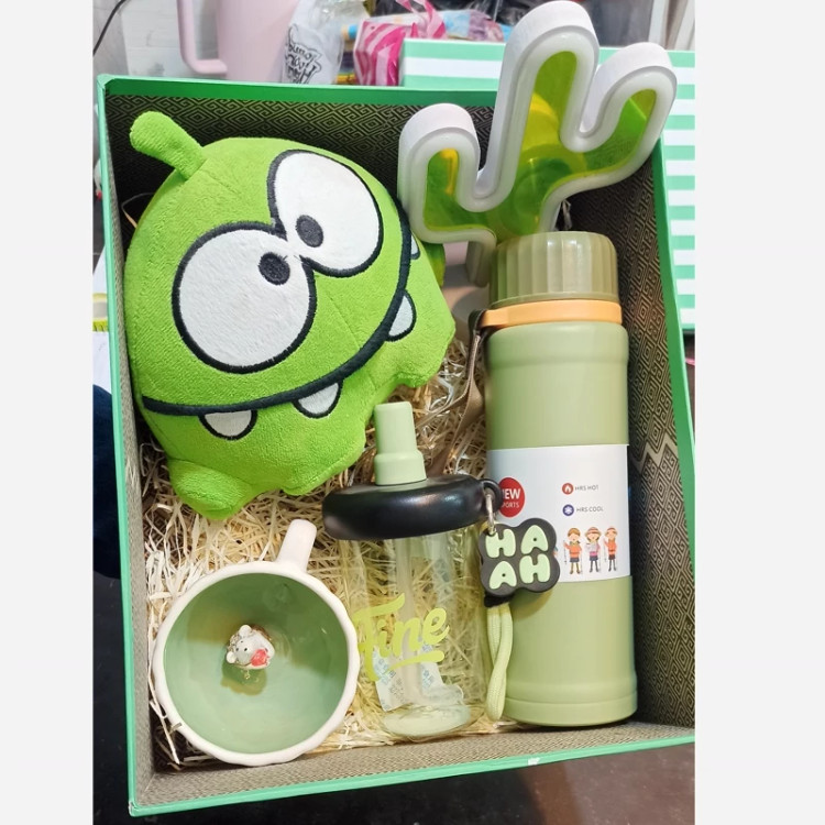 باکس هدیه با تم سبز محتویات فلاسک کمپ 800 میل استیل 316 بدون نشتی ، ماگ سرامیکی سوپرایزی واردتی عروسک اوم نوم چراغ خواب کاکتوس برقی جعبه هارد باکس کادویی میتونه یه هدیه جذاب برای عزیزانتون باشه و اونها رو سوپرایز کنه دستتون برای تنوع بازه و میتونید سفارش بدین تا براتون باکس های رنگی با رنگ دلخواه بچینیم با هر قیمت و محصولی که شما دوست دارین
