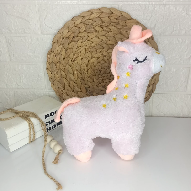 عروسک اسب تک شاخ پولیشی تمامی قطعات دوخت و گلدوزی می باشد کیفیت عالی و درجه یک مناسب استفاده کودک بالای دو سال ب دلیل پرز دار بودن پارچه