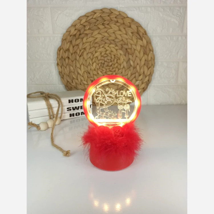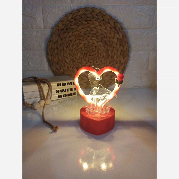 چراغ خواب عاشقانه رینگی در 2 طرح قلب زوج عاشق و گرد پر دار،طرح های جذاب و چشم گیر با نور عالی کار فوق العاده زیبا برای اتاق خواب، باطری خور، دکمه خاموش و روشن