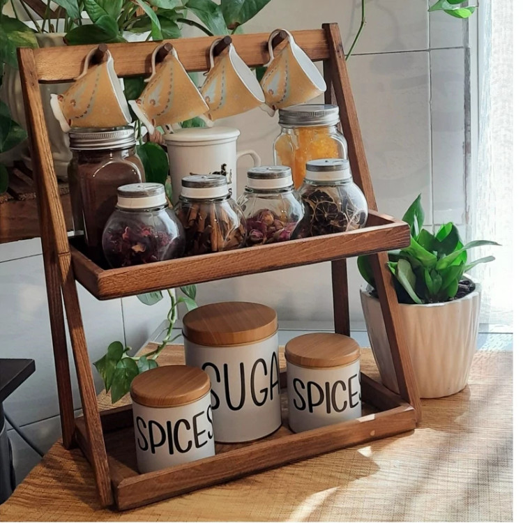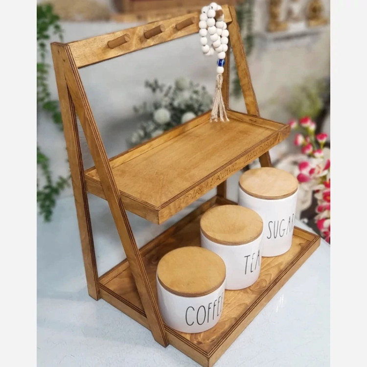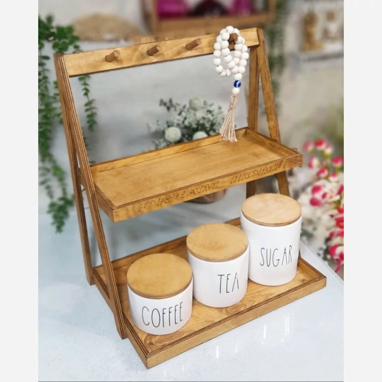 استند چوبی پاسماوری دو طبقه جای شات دار 6 عدد جای شات چوب ترمو روغن گیاهی خورده طول 34 سانت عرض 27 سانت ارتفاع 37 سانت