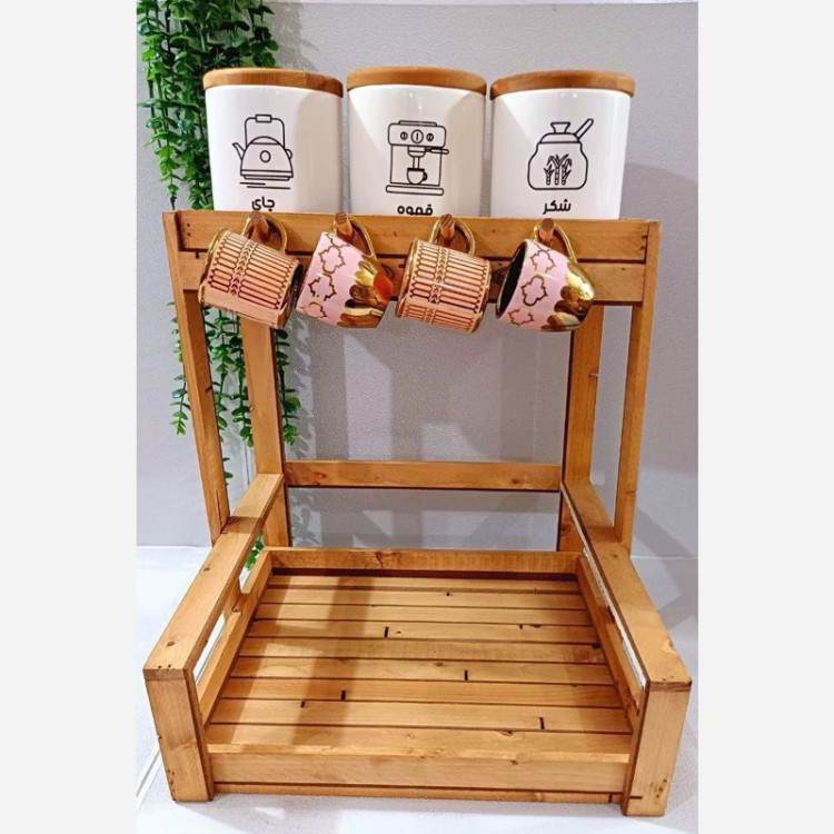 استند اسپرسو چوبی جای شات دار طول 37 سانت عرض 33 سانت ارتفاع 40 سانت
