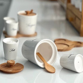ست سه تایی سرامیکی زیره چوبی شامل بانکه شکر، به همراه قاشق چوبی 2 عدد نمک وفلفل پاش سرامیکی بانکه بزرگ شکر ابعاد : 9/5 در10 سانت بانکه کوچک نمک فلفل پاش ابعاد6در7سانت ابعاد زیره چوب:14در16 سانت