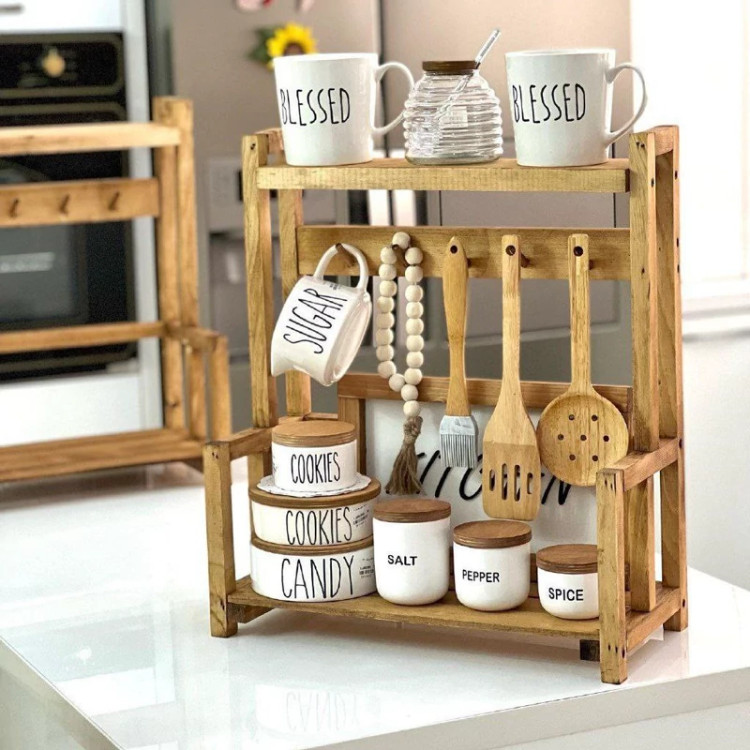 استند چوبی پاسماوری و کافی بار کلبه چوب ترمو روغن گیاهی خورده کیفیت درجه یک عرض 20 سانت طول 37 سانت ارتفاع 41 سانت