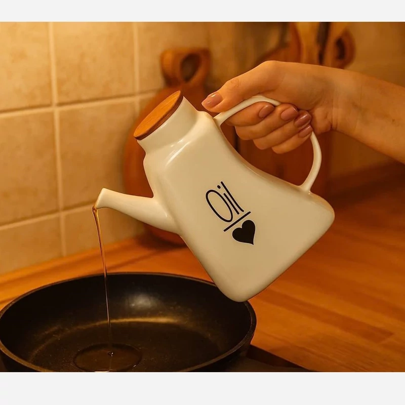 این روغنریز از سرامیک با کیفیت عالی ساخته شده است، که مقاومت بالا در برابر ضربه و تغییرات دما دارد و طول عمر زیادی دارد. درب چوبی مدل کمر باریک دسته دار