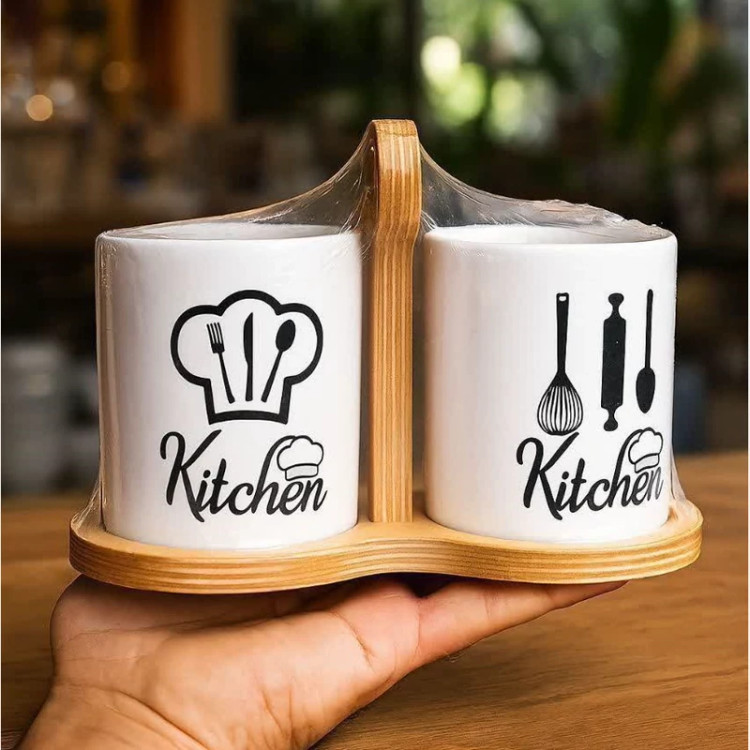 جا قاشقی سرامیکی دو قلو پایه چوبی قابل جدا شدن از پایه کیفیت عالی متن های متنوع ارسال رندوم شیرینگ شده