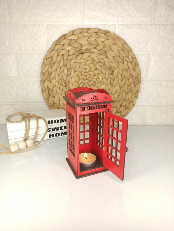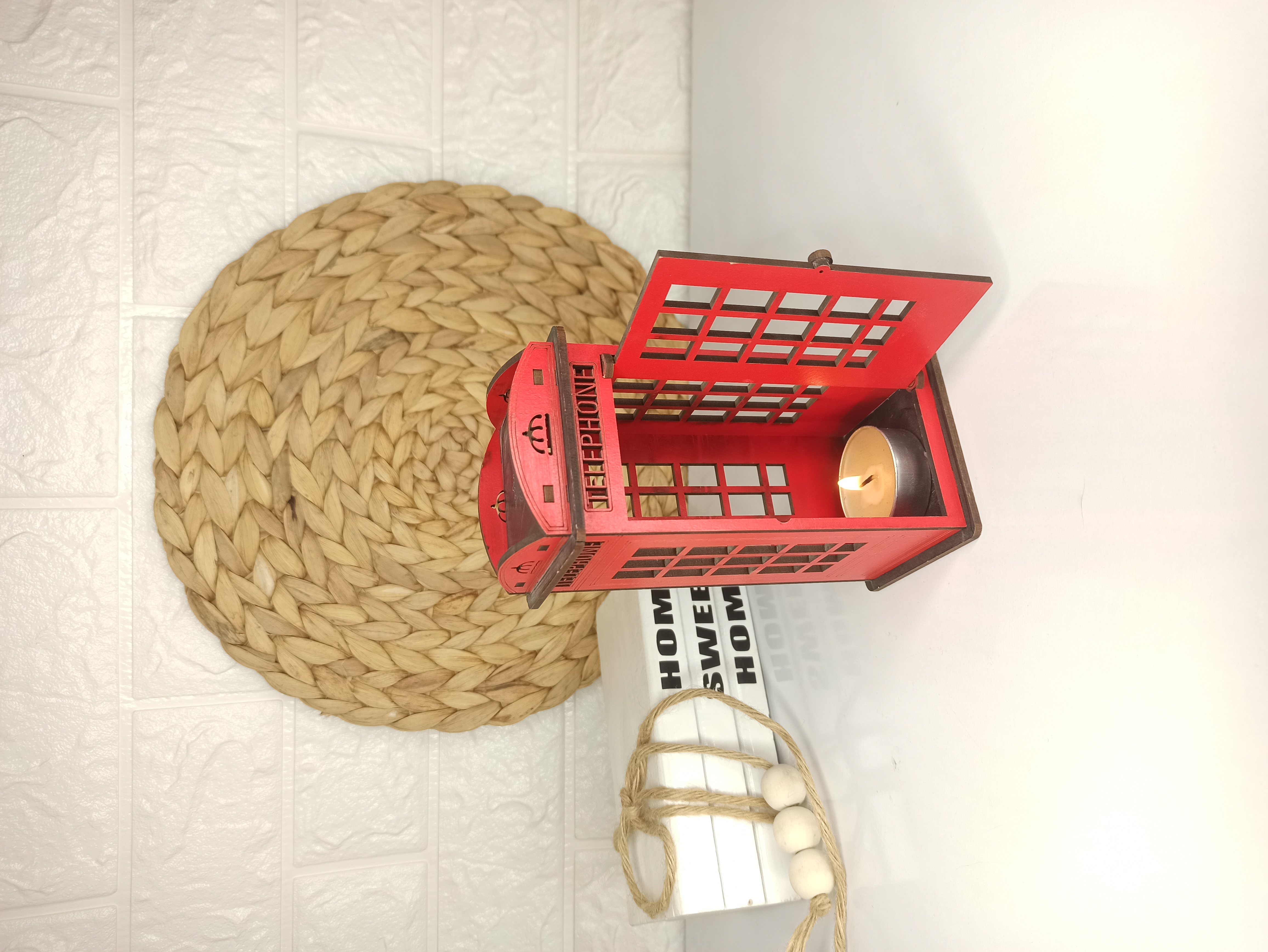 جاشمعی چوبی نوستالژی طرح کیوسک تلفن انگلیسی و ایرانی