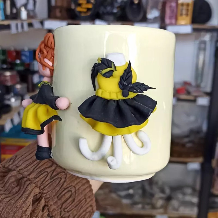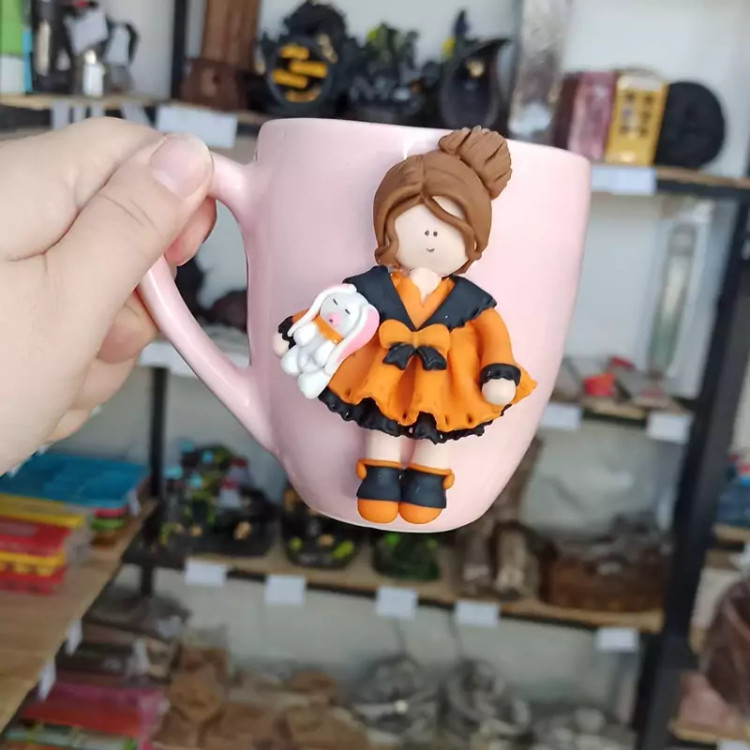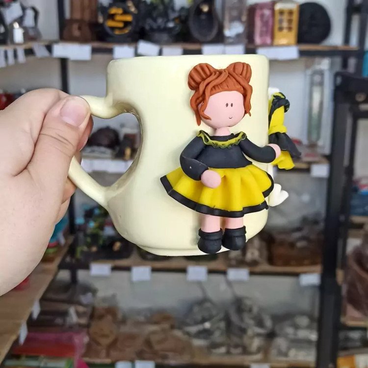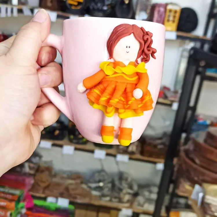 ماگ مجسمه دار دخترانه سرامیکی رنگی