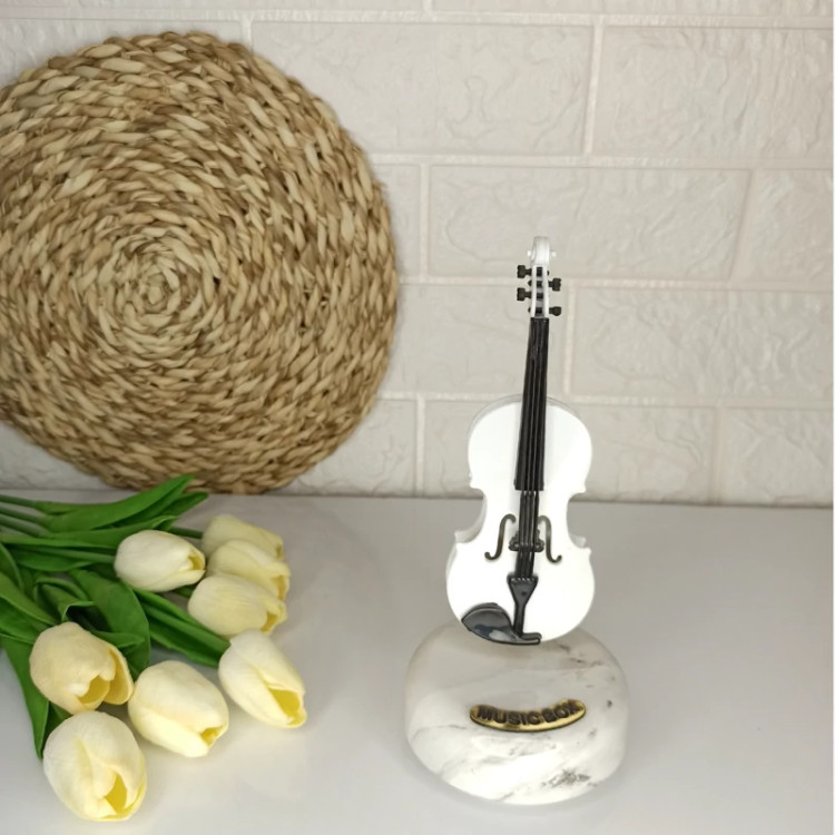 تندیس مجسمه ویالون موزیکال گردان،پایه بالا رو داخل دست نگه میداریم و پایه پایین که مخصوص کوک هست میچرخونیم. جعبه دار مناسب هدیه در دو رنگ سفید و مشکی کار بسیار لوکس و زیبا مناسب برای خانوم ها و آقایان اینکار سن و سال نداره جنس تمام پلاستیک درجه یک