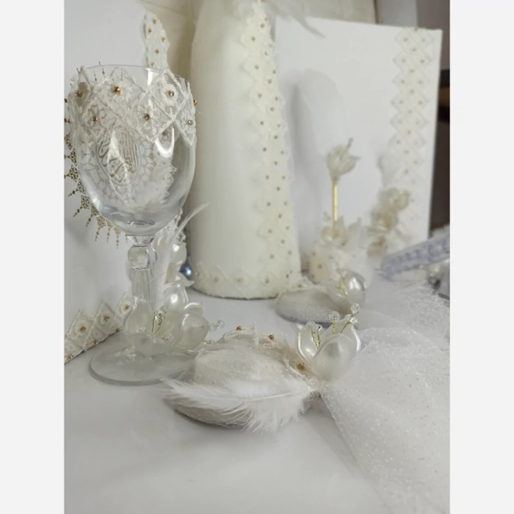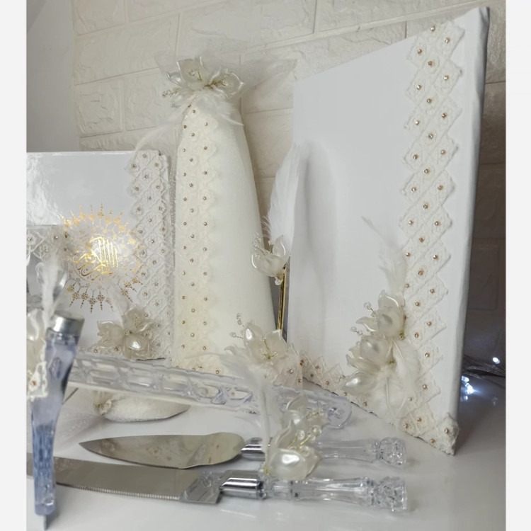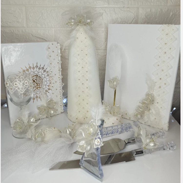 شامل ست کارد کیک بر، یک جفت قند ساب ،یک عدد کله قند، خودکار و جا خودکاری ، تیشه قند شکن، جام عسل